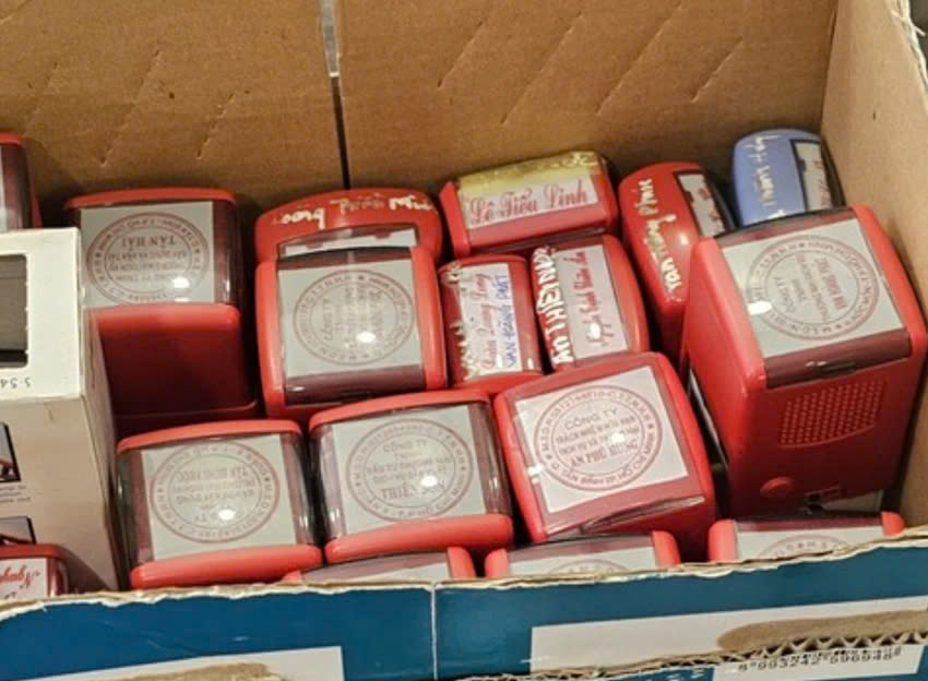Con dấu thu giữ trong một vụ án mua bán trái phép hóa đơn. Ảnh minh hoạ