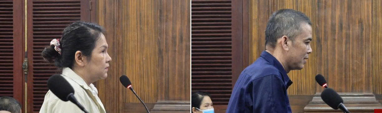 Bị cáo Lê Thị Mỹ Châu và bị cáo Lê Quốc Kháng tại phiên sơ thẩm. Ảnh: SONG MAI