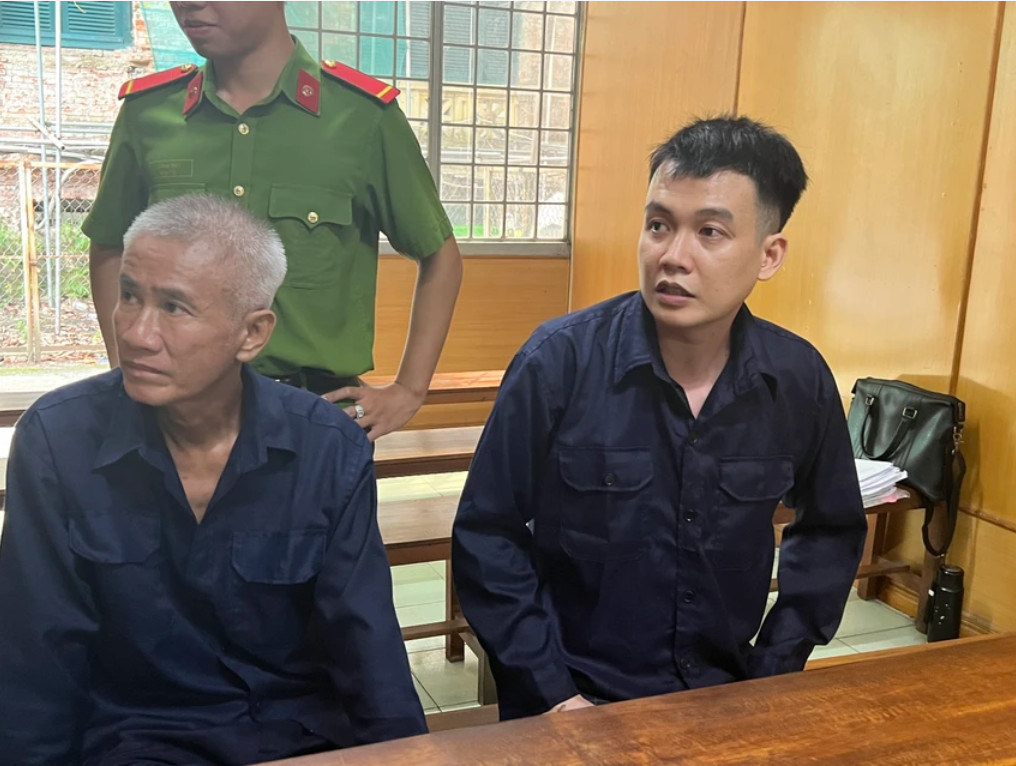 Nguyễn Văn Rỡ (trái) và Nguyễn Hữu Thiện Tâm cùng bị tuyên 14 năm tù vì mua bán găng tay y tế, lừa đảo chiếm đoạt hơn 7 tỉ đồng. Ảnh: HỮU ĐĂNG