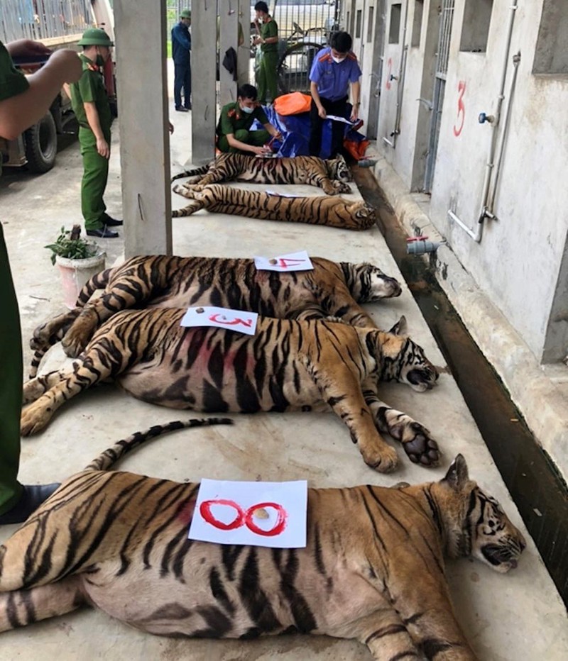 Tang vật số hổ sau khi bắt quả tang được tiêm thuốc mê, đưa vào lồng sắt rồi vận chuyển lên xe tải chở tới Khu sinh thái Mường Thanh Diễn Lâm (xã Diễn Lâm, huyện Diễn Châu, Nghệ An) gửi chăm sóc, chờ giám định phục vụ công tác điều tra. Tuy nhiên, sau đó, 8 con hổ đã chết.