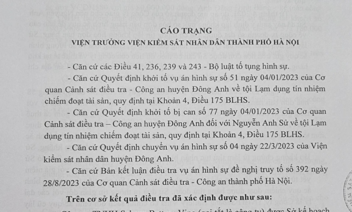 VKSND TP Hà Nội vừa hoàn tất cáo trạng truy tố, chuyển hồ sơ sang TAND TP Hà Nội để đưa ra xét xử vụ cựu nhân viên sale Nguyễn Anh Sử (ở TP Hà Nội) lập khống hóa đơn lấy 5 tỉ đồng về tội lạm dụng tín nhiệm chiếm đoạt tài sản. Bị hại trong vụ án là Công ty TNHH Sebang Battery Vina.