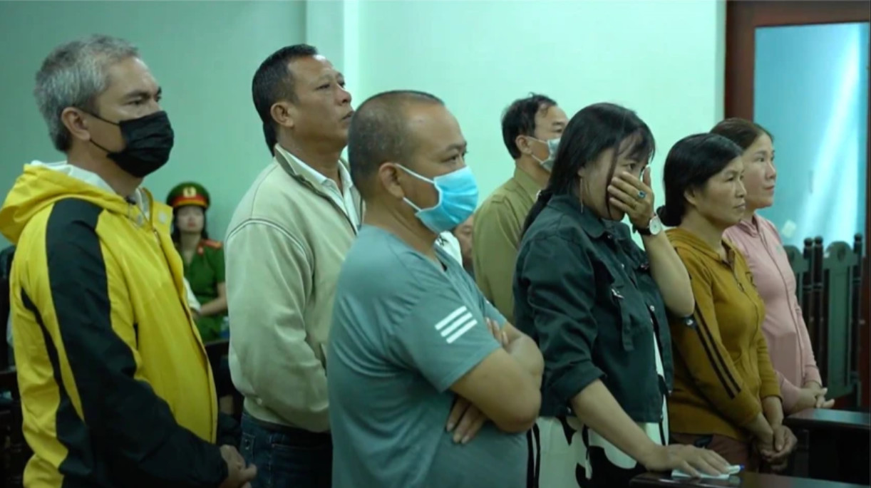 Các bị cáo tại phiên tòa sơ thẩm. Ảnh: NH