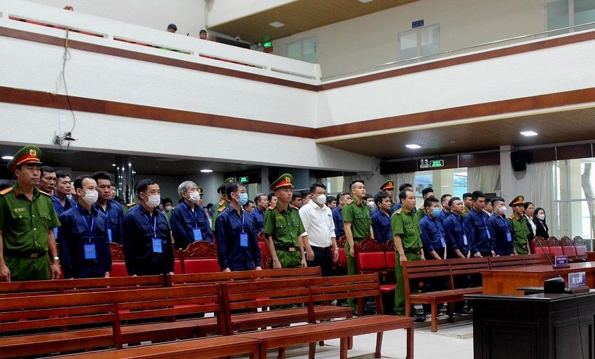 Các bị cáo nghe tòa tuyên án. Ảnh: VH.