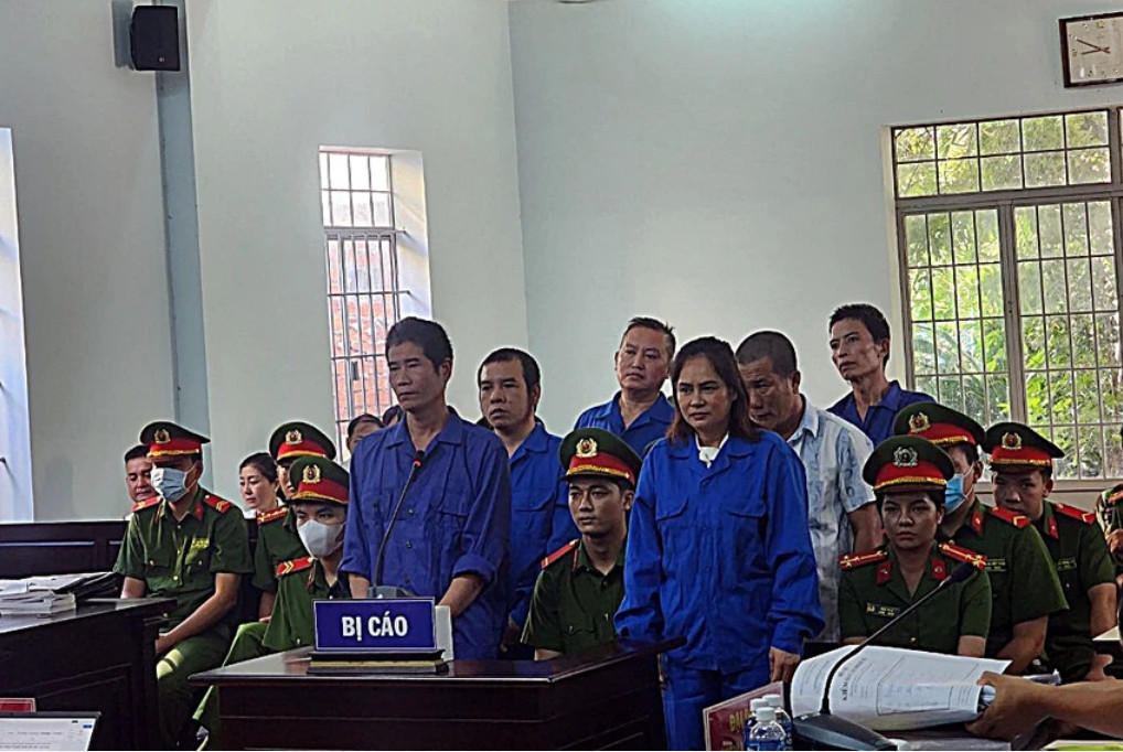 Thảo “lụi’ và đồng bọn tại phiên tòa sơ thẩm. Ảnh: PL