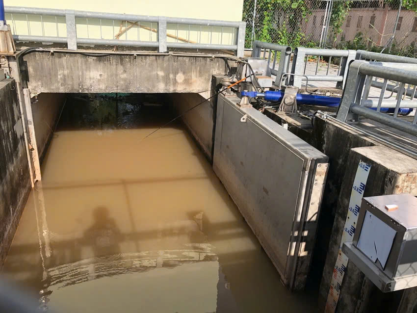Khu vực thi công cống ngăn triều. Ảnh: NN