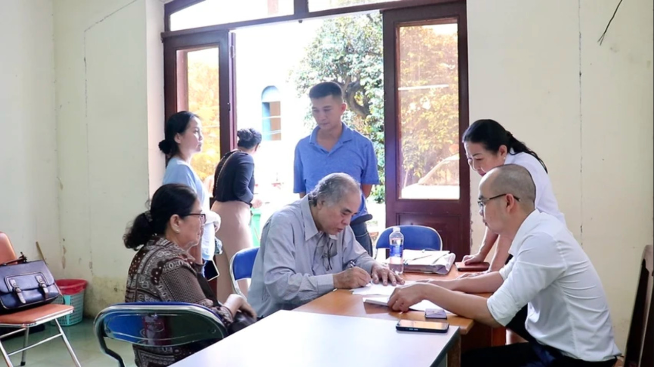 Ông Quyện ký nhận lại bản chính giấy tờ nhà đất. Ảnh: TUYẾT HỒNG