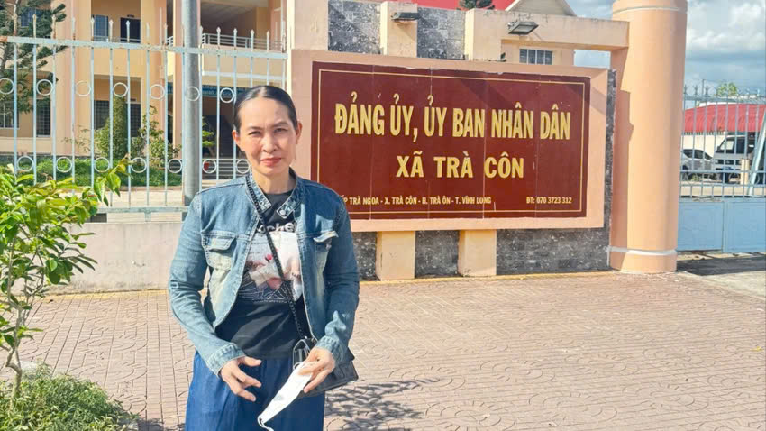 Bà Nguyễn Thị Hiền đến cơ quan chức năng làm việc. Ảnh: NVCC